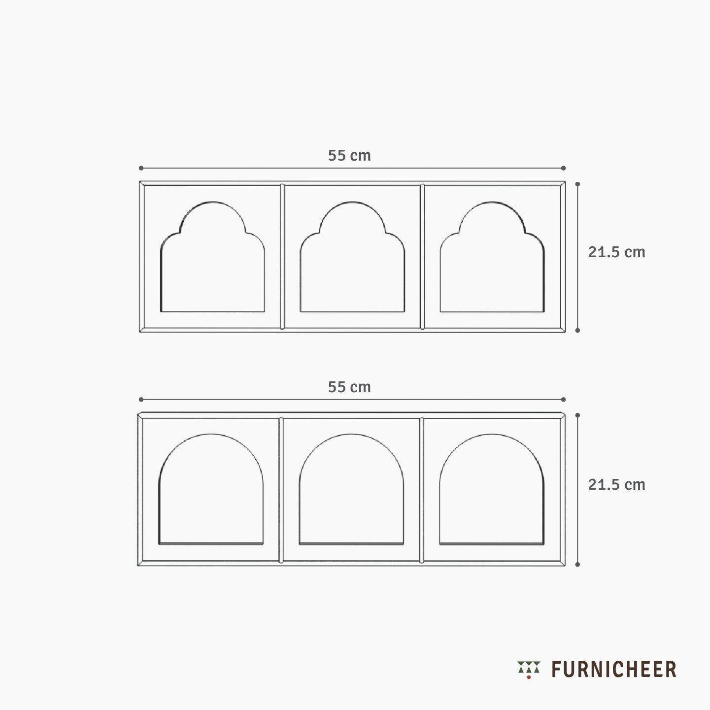 Size of each mirror (in cm): L 55 X W 2.5 X H 21.5