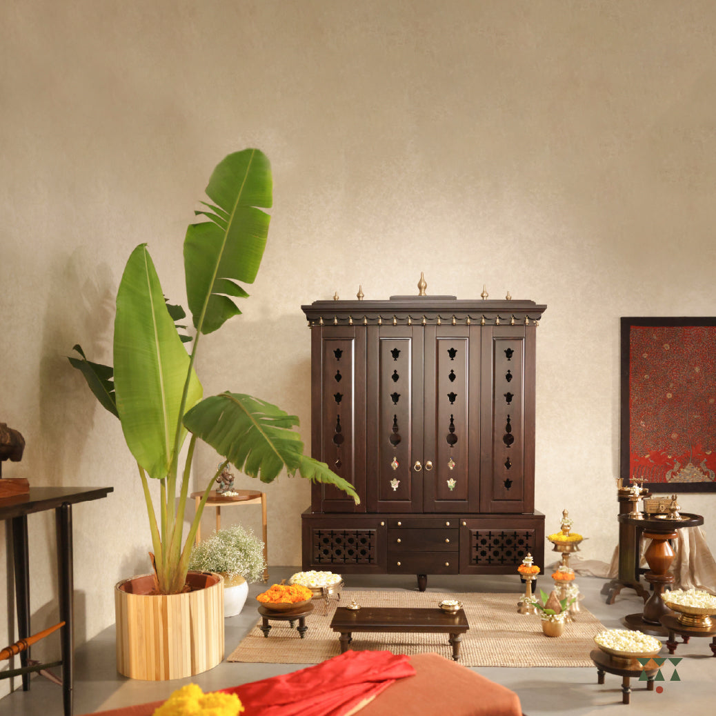 A haven of quietude and devotion, this ensemble transforms any corner into a sacred retreat for the spirit.